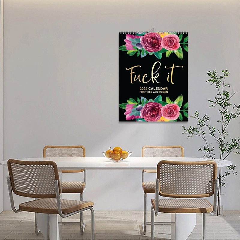 - π This 2024 Wall Hanging Calendar features TWO funny cuss word quotes per month for the year of 2024.