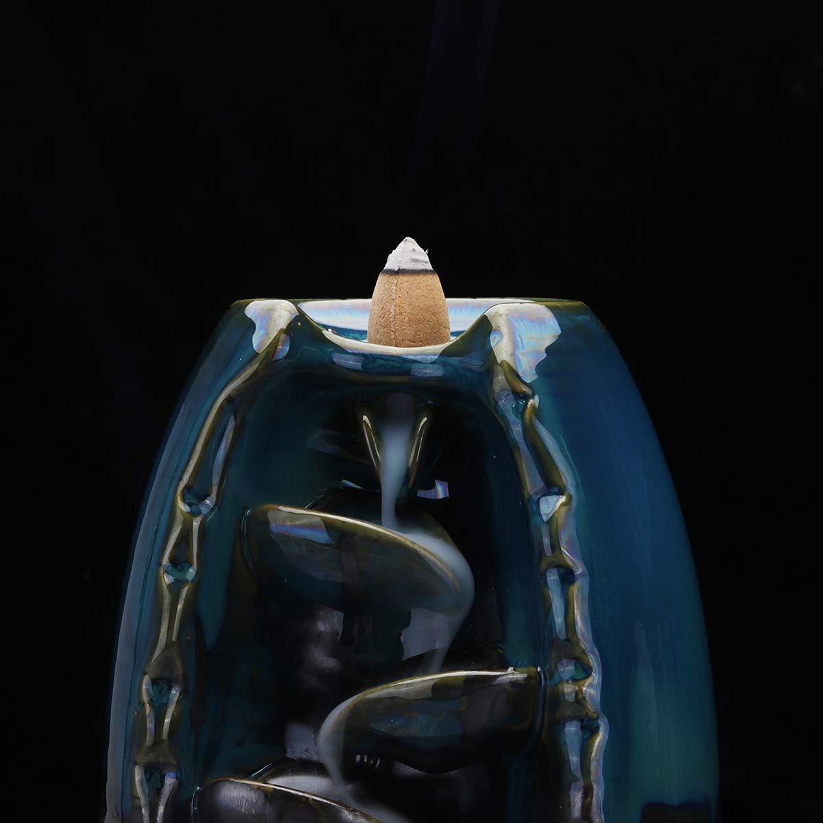 Our splendid Mountain River Waterfall Back-flow Incense Holder has been carefully handcrafted of beautiful, glazed ceramic. When the incense cone is lit, the trail of smoke mimics a waterfall flowing down a mountainside. This lovely, ceramic incense burner is ideal for burning your favorite incenses while providing a relaxing and decorative touch to any space. It's also a great gift for all meditation and yoga lovers. Scented incense cones are specially made to work with this holder. Bullet shaped and produced with a small hole in the base, and a hollow interior, these cones will produce the beautiful smoke 'waterfall' effect when burnt in the holder.