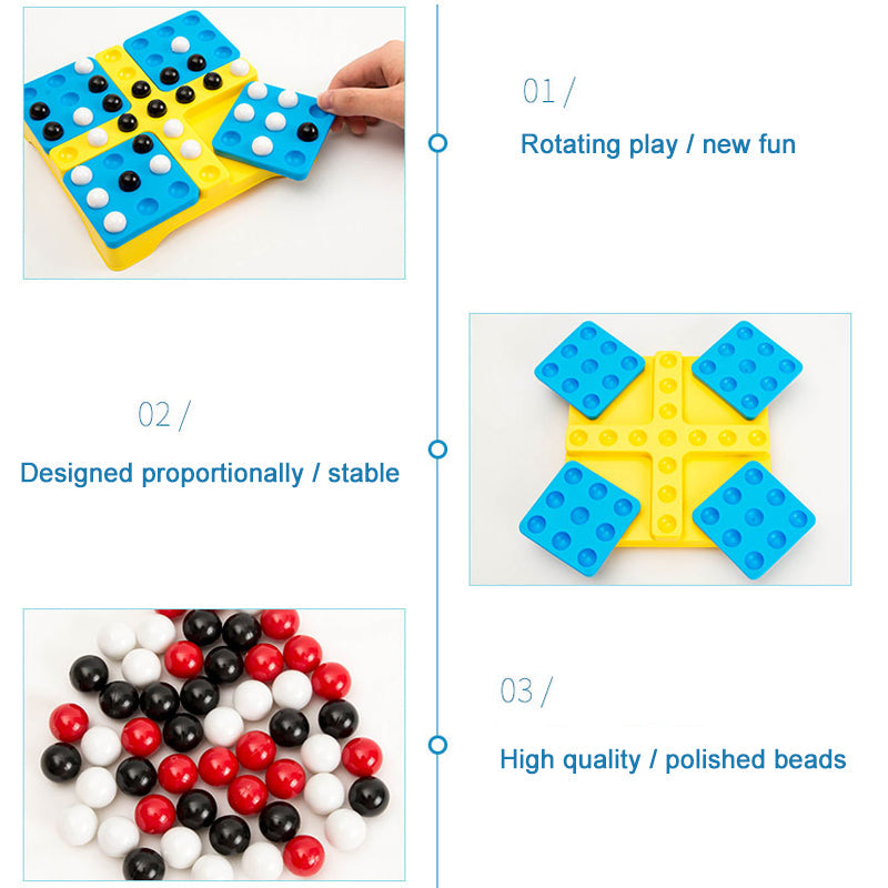 - Convenient to use: Play a winning strategy, this easy-to-learn game aims to create a row of five game markers in any direction before anyone else does. However, there is a twist, each move consists of placing a game marker and then twisting one of the game blocks.Β