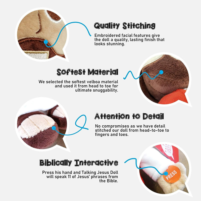 - [Great gift] Talking Jesus Doll is a great gift anytime – and the perfect gift idea for Easter, baptisms, birthdays, confirmations, Christenings and Christmas.